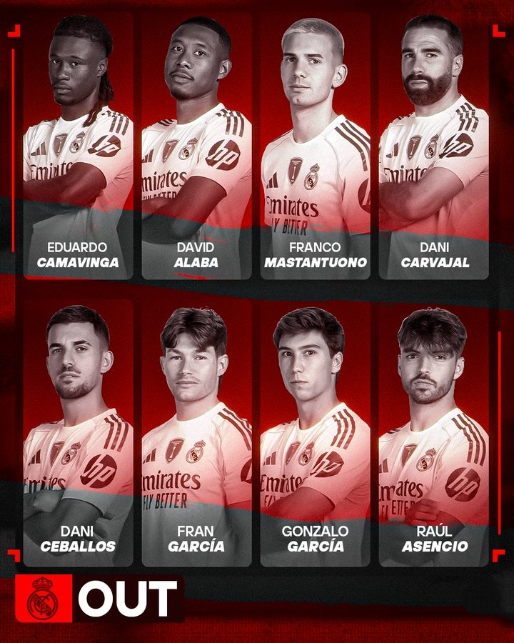 据报道,在皇马的清洗或待售名单中,就包括了卡马文加,阿拉巴、马斯坦托诺、卡瓦哈尔、塞瓦略斯、弗兰-加西亚、贡萨洛-加西亚和劳尔-阿森西奥等多达8名球员。